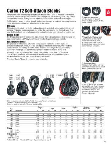 metal shackles or rivets, making them the lightest soft-attach blocks Harken has ever designed. Line ties, splices, or lashes to