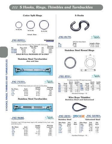 212 S Hooks, Rings, Thimbles and Turnbuckles