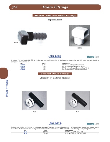 Impact drains are molded in S.T. 801 nylon and are useful as drains for ice boxes, anchor wells, etc. Drill hole, coat with bedding