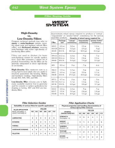 Low-Density Fillers sized filler products. Quantity of mixed epoxy required for