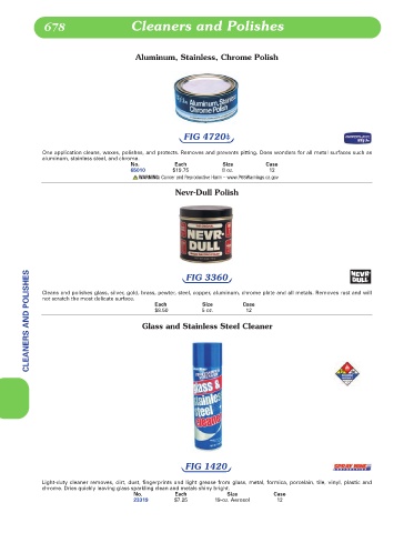 CLEANERS AND POLISHES Cleans and polishes glass, silver, gold, brass, pewter, steel, copper, aluminum, chrome plate and all metals. Removes rust and will