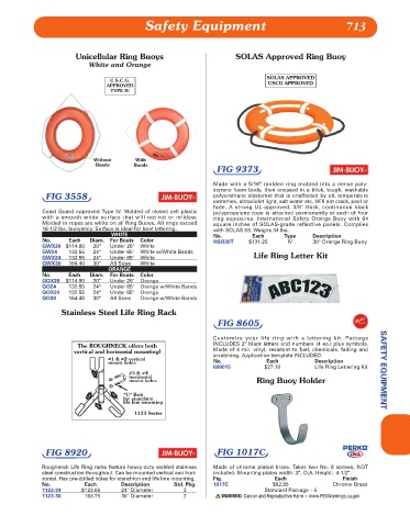 No. Each Diam. For Boats Color HSO30T $131.25 IV 30" Orange Ring Buoy