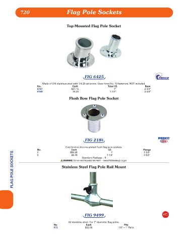 FLAG POLE SOCKETS Stainless Steel Flag Pole Rail Mount