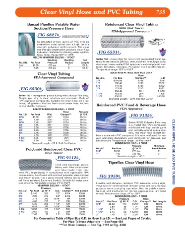 Blue Tracer 3/4" $5.90 225 lbs. 2" CLEAR VINYL HOSE AND PVC TUBING