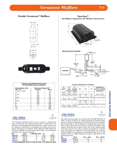 The Vernatone Muffler will not rust, corrode, or deteriorate below or above the waterline. The Gen-Sep should be installed