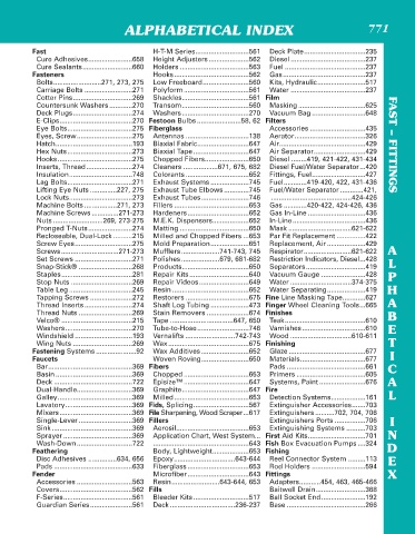 Inserts, Thread........................274 Cleaners ..................671, 675, 682 Diesel Fuel/Water Separator...420 FITTINGS
