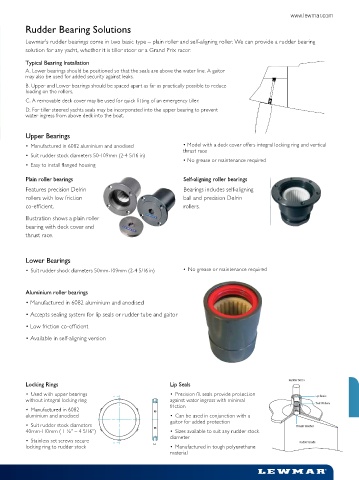Lewmar’s rudder bearings come in two basic type – plain roller and self-aligning roller. We can provide a rudder bearing