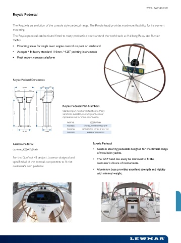 The Royale pedestal can be found fi tted to many production boats around the world such as Hallberg Rassy and Rustler