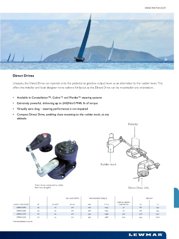 Uniquely, the Direct Drive can operate onto the pedestal or gearbox output lever as an alternative to the rudder lever. This