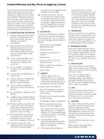 transport or installation of product. b. Lewmar grants no other The British Marine Federation may be