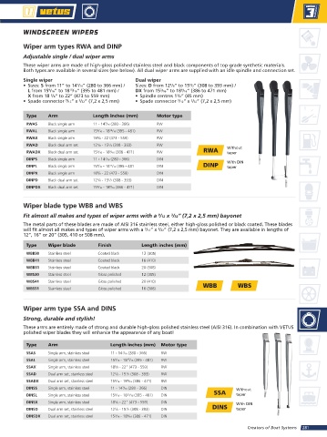 will fit almost all makes and types of wiper arms with a /12” x /32” (7,2 x 2,5 mm) bayonet. They are available in lengths of