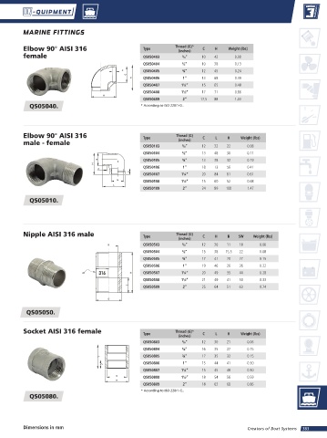 Elbow 90° AISI 316 Type Thread (G)* C H Weight (lbs)